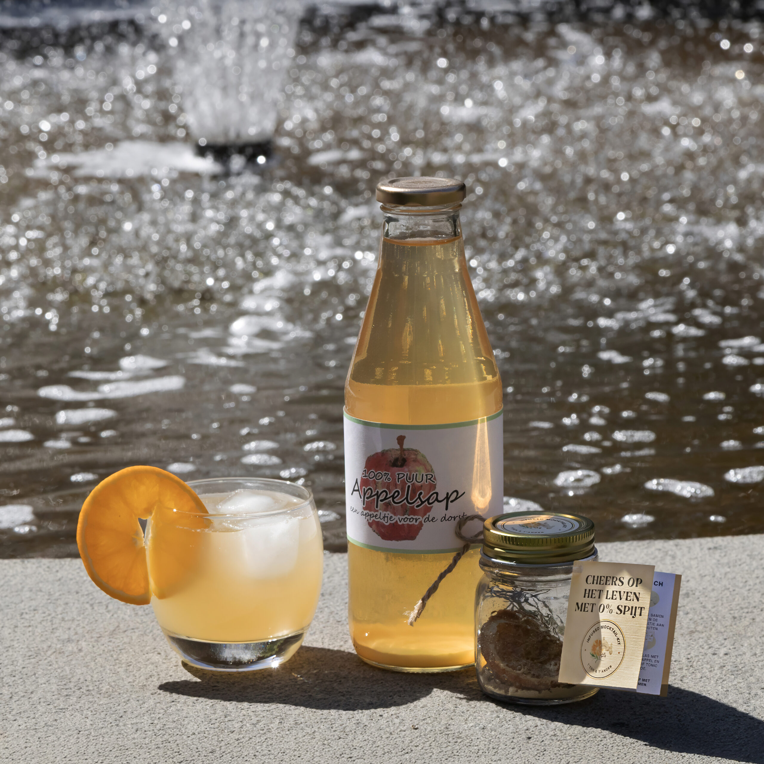 mocktailset met kaartje “Cheers op het leven met 0% spijt”